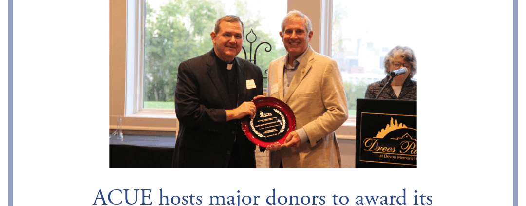 Beth Ruehlmann, director of development for ACUE, said, “Ralph has a true heart for ACUE, his love for our ministry and his legacy of support continues now through the Drees Homes Foundation, which we honor this evening as Cornerstone Donors. They have renewed the commitment of our first Cornerstone Donors … we are so grateful for your enduring support.”