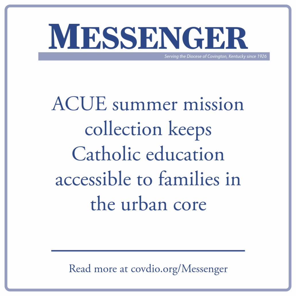 In the Diocese of Covington, five elementary schools fall under the ACUE (Alliance for Catholic Urban Education) banner. Serving the Covington deanery, ACUE’s mission is to “preserve Catholic education in urban areas,” providing tuition assistance to low-income families, and with it the option for a Catholic education.