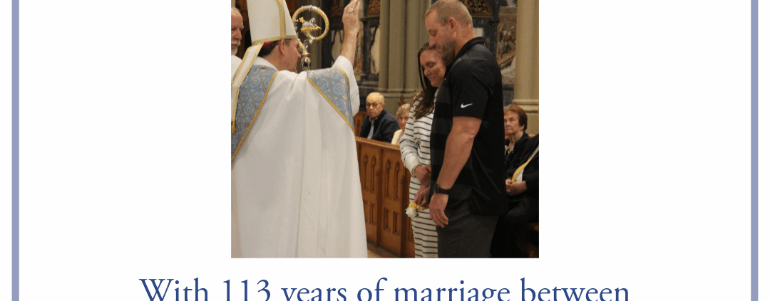 The Diocese of Covington Office of Catechesis and Evangelization hosted the annual Wedding Anniversary Vespers, Sept. 7, at the Cathedral Basilica of the Assumption, Covington. Married couples celebrating major anniversary milestones — 1, 25, 50 and 60-plus years — are invited to attend the Vespers where Bishop John Iffert meets with and blesses each couple.
