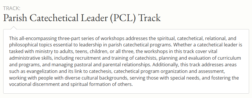 Parish catechists are strongly encouraged to take a minimum of 2 workshops per year until they reach Master Catechist Certification.