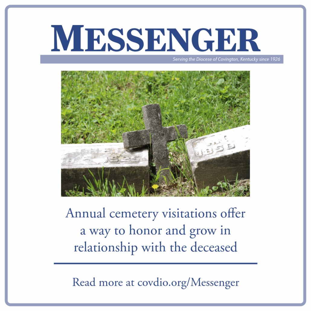 The annual cemetery visitations day will take place Oct. 18 at St. John Cemetery, Ft. Mitchell, 10 a.m.; St. Mary Cemetery, Ft. Mitchell, 11 a.m.; and St. Stephen Cemetery, Ft. Thomas, 12:30 p.m. At each cemetery a prayer service will be led by Bishop John Iffert, and the names of each person buried during the last year will be read. The event is open to all as this tradition is a way to honor those who have passed as they transition from this life to the next.