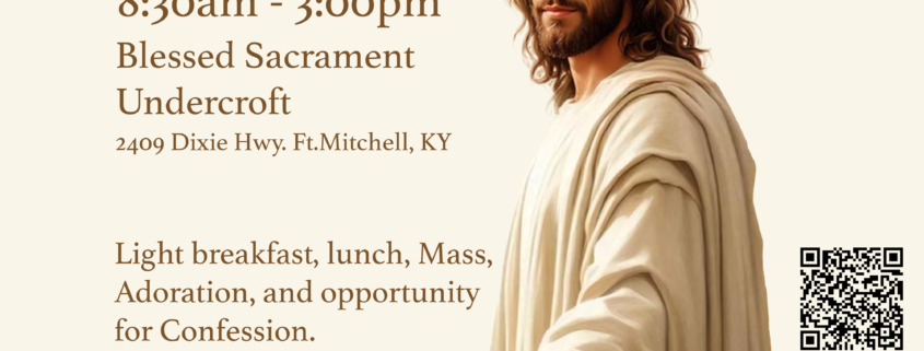 Join us for talks given by Fr. Michael Hennigen, Janet Lees, and Rachel Peach. Day includes Mass, Adoration, and an opportunity for Confession. Light breakfast and lunch provided. For questions or to register, contact Robyn at rmwelch99@gmail.com