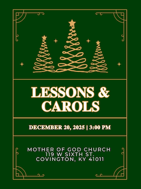 Please join the Mother of God music ministry for a Lessons and Carols concert Dec. 20, 3 p.m., Mother of God Church, Covington. Experience the joy of the season through Scripture and song, with organist, Meg Booker, and special performances by violin, piano and trumpet.