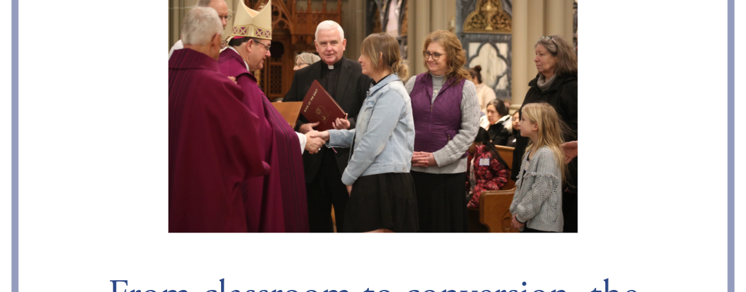 At her second OCIA class, Mrs. Browning arrived with, “a list of questions for Sister Lynn, because I was curious. I wanted to know why everybody had a Mary in their front yard … there were just so many things that didn’t make sense,” she said. “Just that one class, Sister Lynn connected all of the dots for me that I had that were scattered all over the place.”