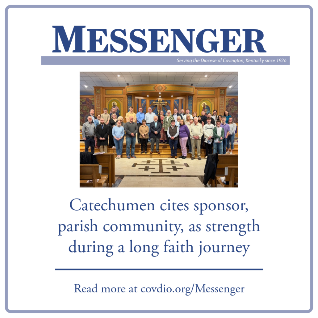“This year has actually been a really great year,” Ms. Adkins said. “I’ve been able to go to all my classes, and, why I think it’s been so successful is because of my sponsor. Debbi Cranley (the OCIA coordinator at St. Timothy Parish, Union) assigned me my sponsor and she’s amazing … She’s really gotten me into the spirit and helped me through this spiritual warfare.”