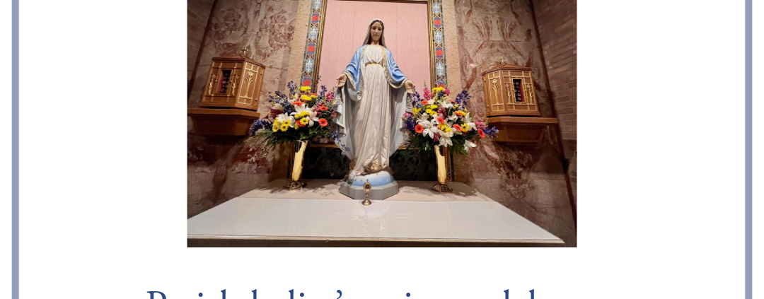 Additionally, Father Hainsey was responsible for the design of the shrine’s reliquary boxes, according to Ms. Connaughton. “They’re beautiful,” she said. “They match the church perfectly — adhered to either side of our Mary statue and the altar of Mary.”