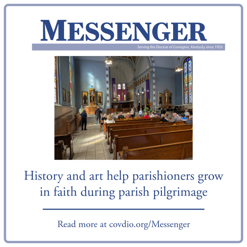 This year, 50 parishioners joined Father Bankemper on a pilgrimage to St. Francis Seraph Parish, Cincinnati, where they learned the storied history of the parish, including the underground cemetery, beautiful artwork and the news of their imminent closing.