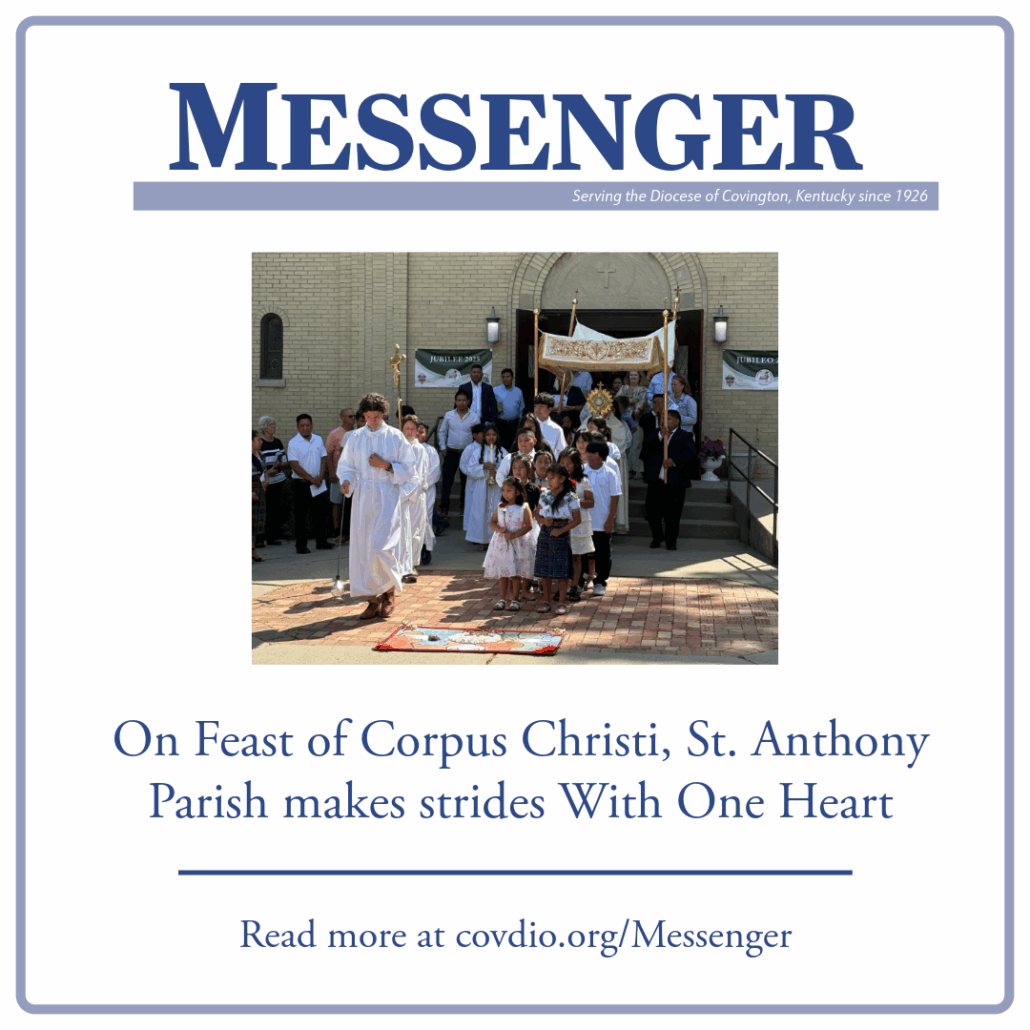 St. Anthony Parish, Taylor Mill, made strides, June 22, in implementing two of its With One Heart parish pastoral plan priorities — creating a welcoming community by hosting cultural exchange events and increasing confidence in Church teaching — with a Eucharistic procession on the feast of Corpus Christi.