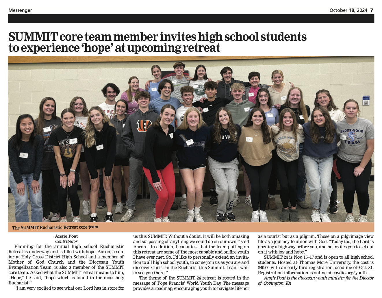 SUMMIT is a High School Eucharistic Retreat for current 9th through 12th graders.